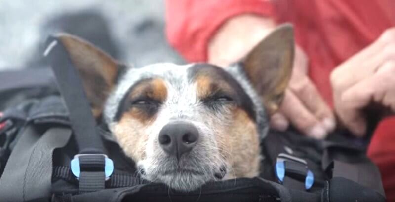 Whisper tightly packed away on Dean’s back seconds before the jump and safely being unpacked after the flight